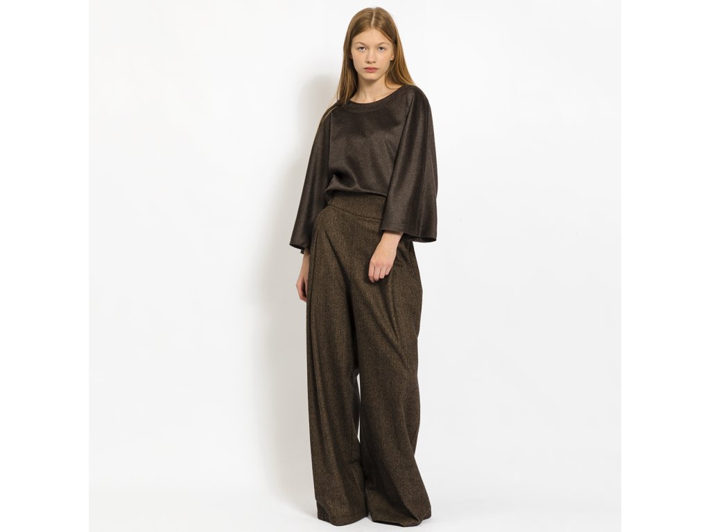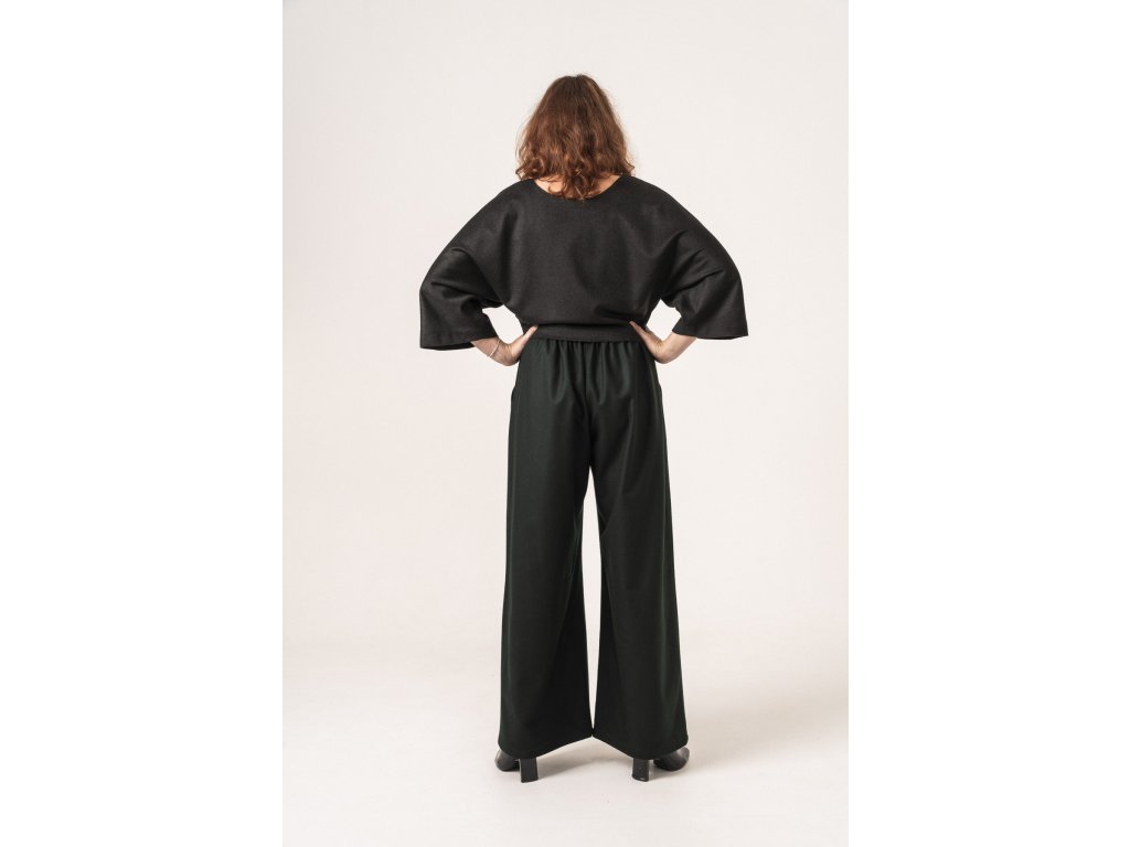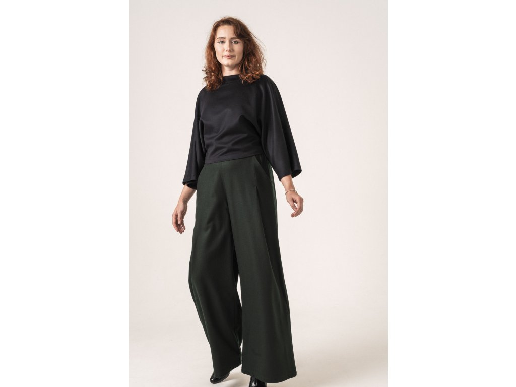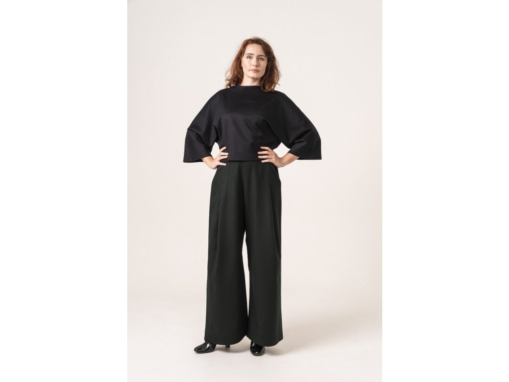Dámsky top LUNA je elegantné zvršok. Zaujímavosťou je, že sa dá nosiť na obe strany. Podľa toho, aký chcete výstrih, väčší alebo menší. Strih na pleciach je padavý a veľmi pohodlný. Rukávy sú kratšie ale široké zvončekové. Strih topu je zúžený v drieku a má držať nad bokmi. Top je celý ozdobne štepovaný. Vnútorné švy sú precízne lemované.