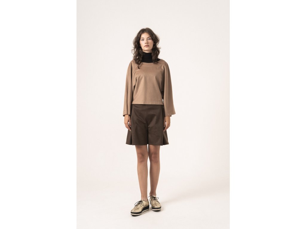 Dámsky top LUNA je elegantné vršok. Zaujímavosťou je, že sa dá nosiť na obe strany. Podľa toho, aký chcete výstrih, väčší alebo menší. Strih na pleciach je padavý a veľmi pohodlný. Rukávy sú kratšie ale široké zvončekové. Strih topu je zúžený v drieku a má držať nad bokmi. Top je celý ozdobne štepovaný. Vnútorné švy sú precízne lemované. Model LUNA je ležérny top z luxusného prírodného materiálu. Veľkosti sú kumulované do S,M a L